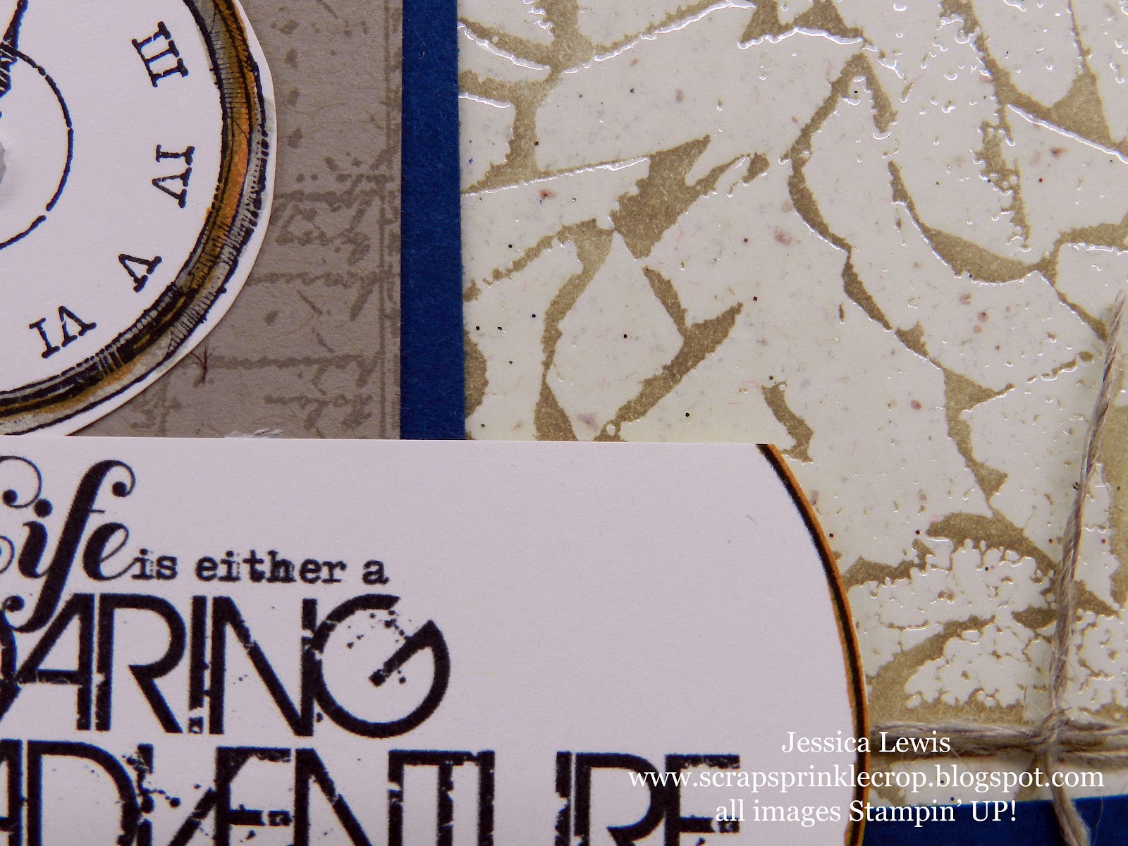 My favorite part of this card is getting to use so many different tools to make it! We used a piece of clear window sheet and stazon for the clock then used silver embossing powder to make the frame of the clock stand out. To give the banner a little bit of texture, we embossed it at an angle using the Stripes embossing folder. In addition, we used the color spritzer tool (my FAV!) to splatter some "More mustard" and give it some "umph!" . The combination of textures and colors brings it all together very nicely.