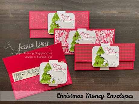 I took advantage of the color challenge to create a few money/check envelopes for Christmas using the Beary Cute Bundle from the 2023 Sept.-Dec. catalog by Stampin' UP!.